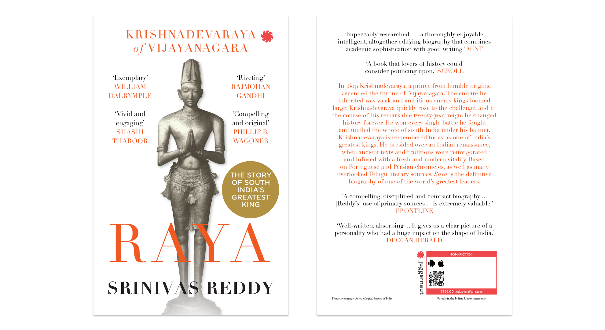 In 1509, Krishnadevaraya, a prince from humble origins, ascended the throne of Vijayanagara. The empire he inherited was weak from two messy dynastic successions and ambitious enemy kings loomed large on all sides. Krishnadevaraya quickly rose to the challenge,and in the course of his remarkable twenty-year reign, he changed history forever. He won every single battle he fought and unified the whole of south India under his banner. Krishnadevaraya is remembered today as one of India’s greatest kings. He presided over an Indian renaissance, when ancient texts and traditions were reinvigorated and infused with a fresh and modern vitality. This fascinating and riveting book is meticulously researched and beautifully written. Based on Portuguese and Persian chronicles,as well as many overlooked Telugu literary sources, Raya is the definitive biography of one of the world’s greatest leaders.