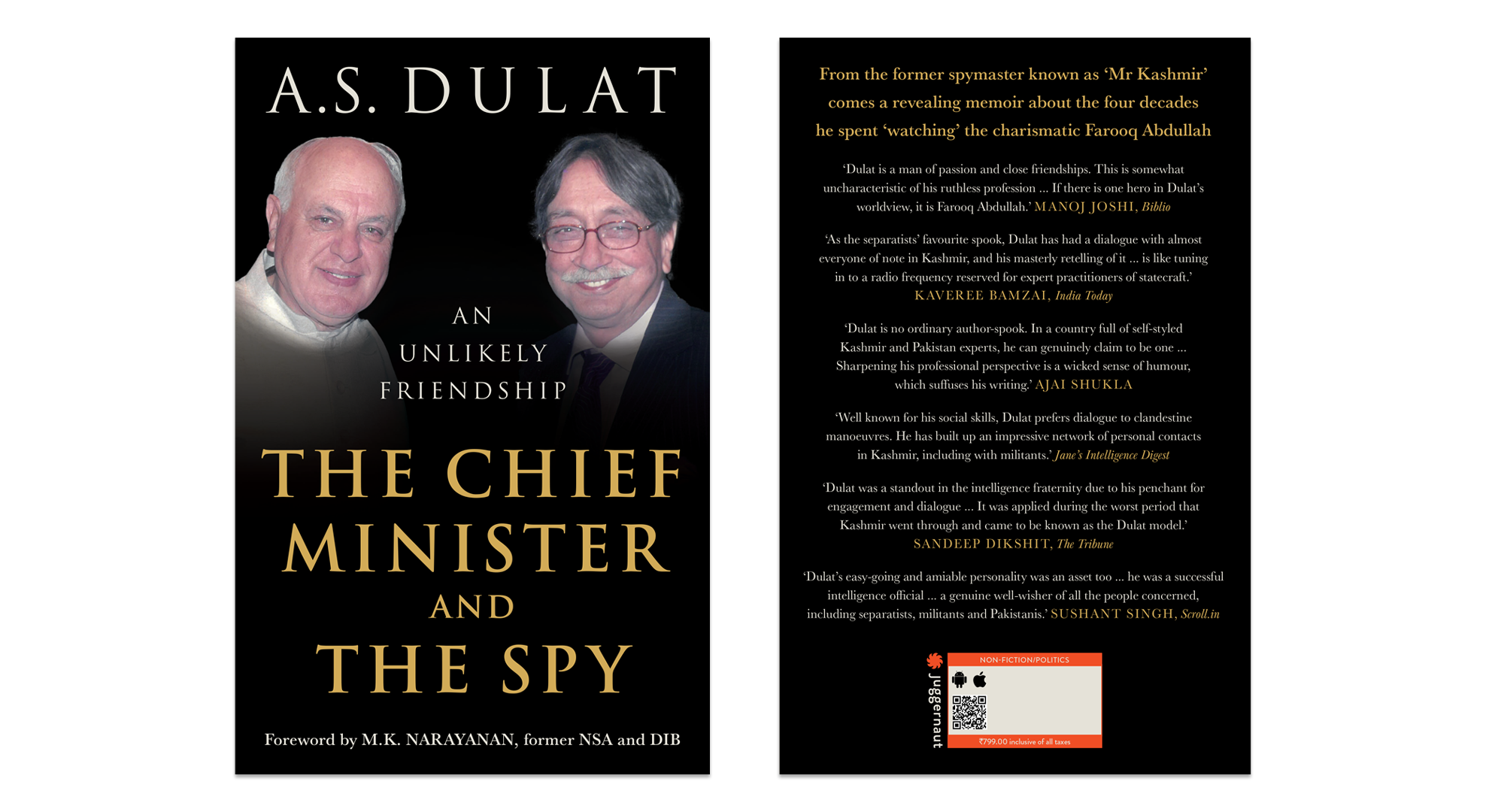 The Chief Minister and the Spy is a collection of secrets, encounters and untold stories – some whispered, some explosive. With wit, candour and an insider’s eye, Dulat reveals ‘Doctor Sahib’ (as Farooq is popularly known) as only he can. Compelling and deeply human, this book offers a rare glimpse into an unlikely relationship forged in the heat of one of India’s most complex conflicts.
